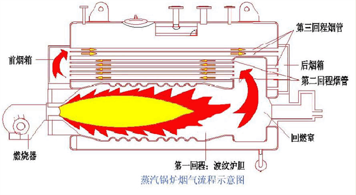 采用国内外先进的大型熔炉设计技术,在原来的传统设计上增加了熔炉的直径,增加了熔炉的辐射热交换面积,从而使锅炉的热交换主要是辐射热交换。减少两三个回程。传热承担,在使燃料充分燃烧的同时,减少了有害气体的产生量。与此同时,在炉子高温区采用的波纹炉胆技术不仅增加了辐射换热面积,而且还起到阻挡烟气运动的效用,使辐射换热功效愈发显著。波纹炉不仅增加了炉的总体强度,还可以自动补偿炉的热胀冷缩应力,避免了由于管板热应力变化而引起的焊缝开裂等瑕疵,因此兼具很强的适应性不同的燃料,可以燃烧重油,轻油,天然气,城市燃气。