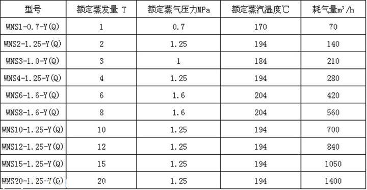 WNS燃气蒸汽锅炉参数:在相同热效率下为94%。