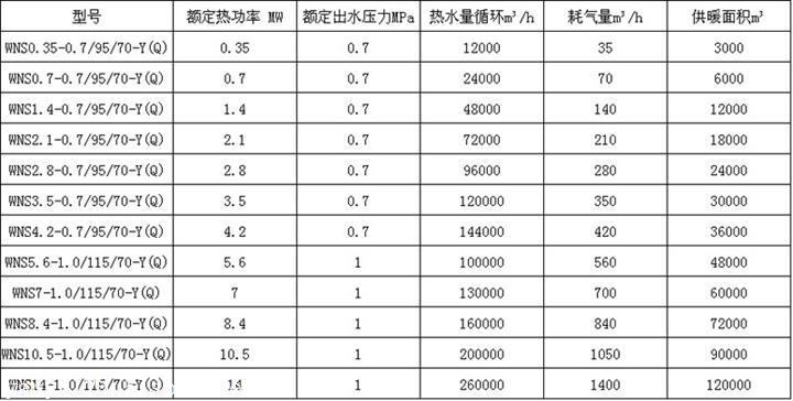 WNS燃气热水锅炉参数(带压力):如果加热功率相同:94%,则可获得以下参数,热效率越高,空气消耗越少。